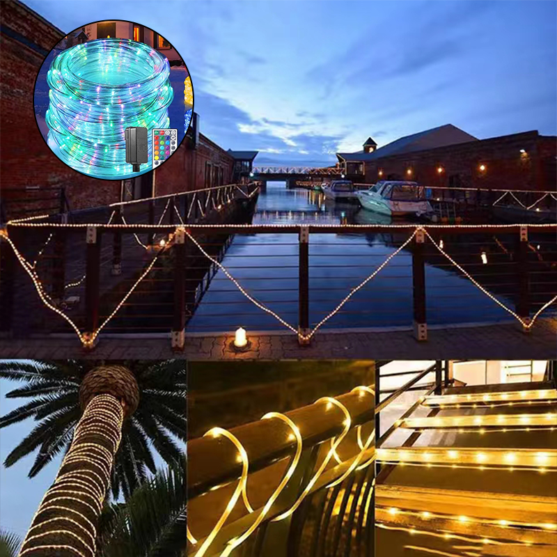 The 8 Modes Christmas LED Rope Lights, offered by Huizhou shineu Lighting Technology Co., Ltd., are rainbow tube LED light strips suitable for outdoor gardens and holiday decorations. Positioned as a “waterproof rainbow hose light,” they support eight dynamic modes and dimming, and are IP65 rated for outdoor use in rain and dust. They utilize an LED string light structure with a PVC/rubber sheath for both flexibility and weather resistance. Customization and wholesale options are available for various lengths. With a rated lifespan of 50,000 hours and a one-year warranty, they are ideal for Christmas, parties, outdoor gardens, and commercial landscape lighting.