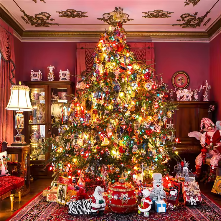 Christmas and Holidays: Roof moldings, Christmas trees, street and window decorations create vibrant festive colors.