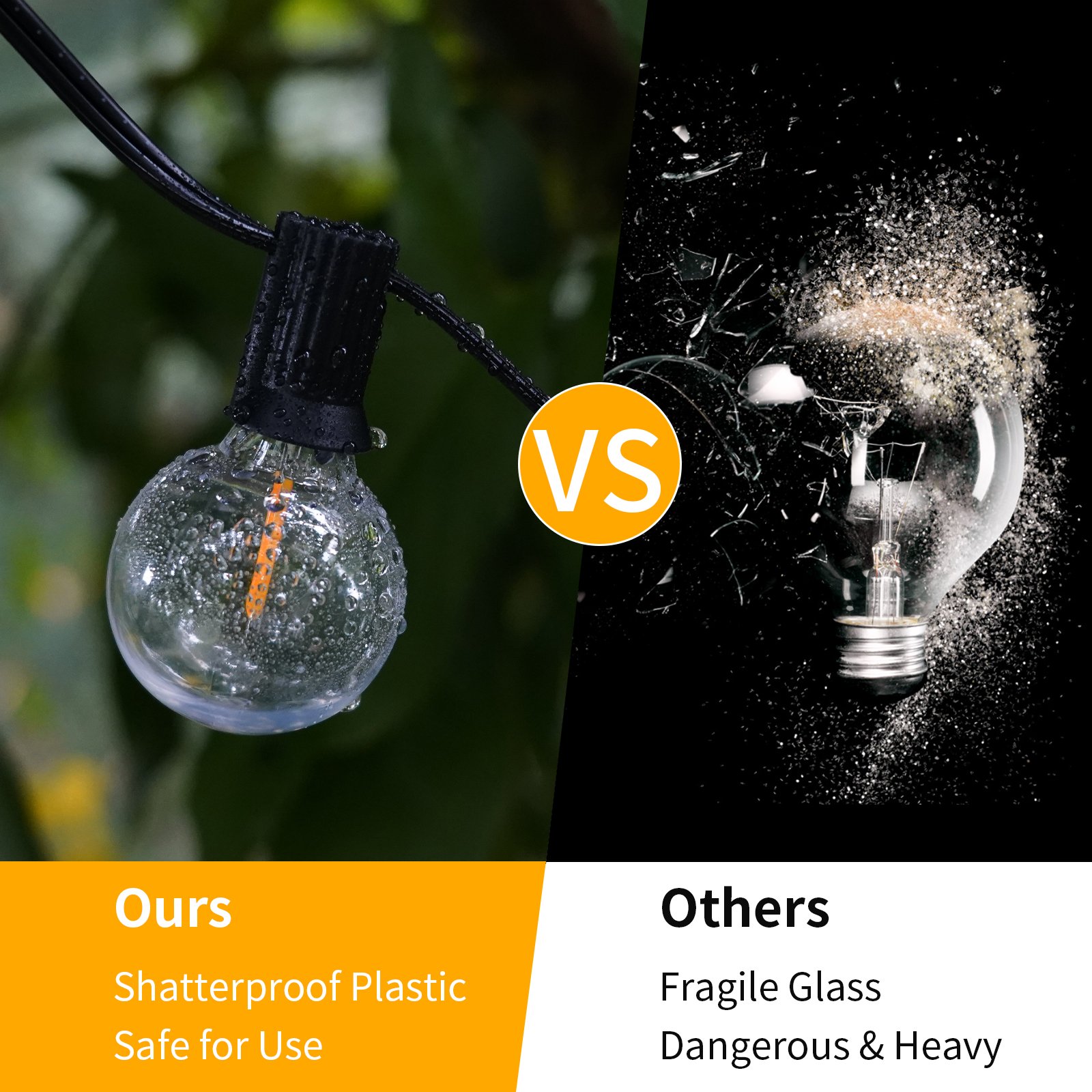 Classic G40 appearance: A sleek, spherical shape with a transparent, impact-resistant lens, suitable for patios, pergolas, fences, and festive decorations.