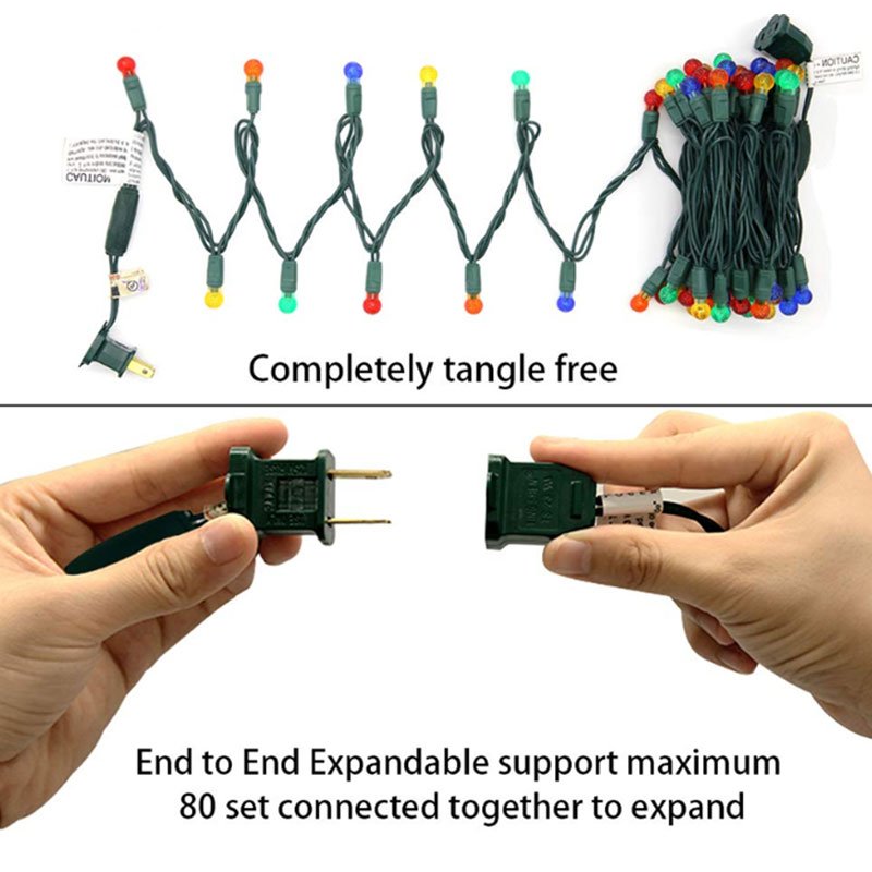 This C7/C9 lamp holder string features IP65 waterproofing and 120V direct power operation, supporting dimmable control and suitable for a variety of decoration scales, from home eaves to commercial streetscapes. Its Ra80 color index combined with a luminous efficacy of approximately 80 lm/W strikes a balance between festive ambiance and energy efficiency. Its 50,000-hour lifespan ensures reliability during peak seasons. Length is fully customizable, and power supply can be segmented and split by region to minimize the impact of voltage drop over long distances. The manufacturer provides design and installation services, covering solution planning, wiring, and implementation, shortening project turnaround time. Logo and packaging customization is supported, facilitating branding and channel distribution.